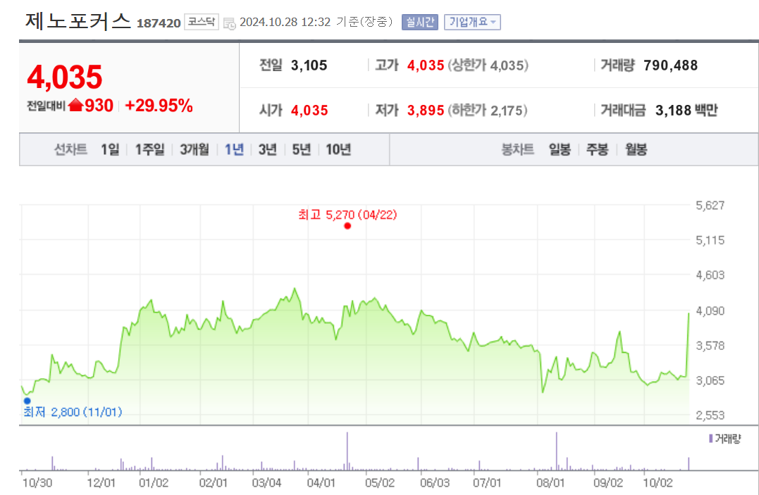 [급등주] 제노포커스, +29.95% 상한가 기록