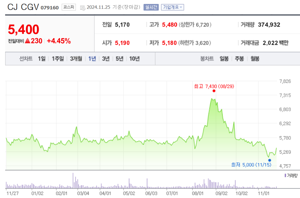 CJ CGV 주가 정보